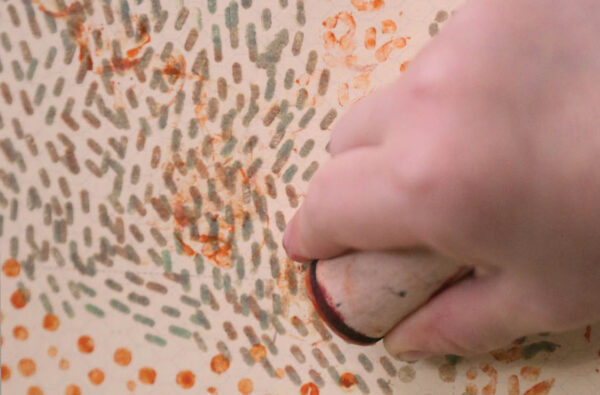 met originele manieren van stempelen, eigen stempels maken, monoprint,…